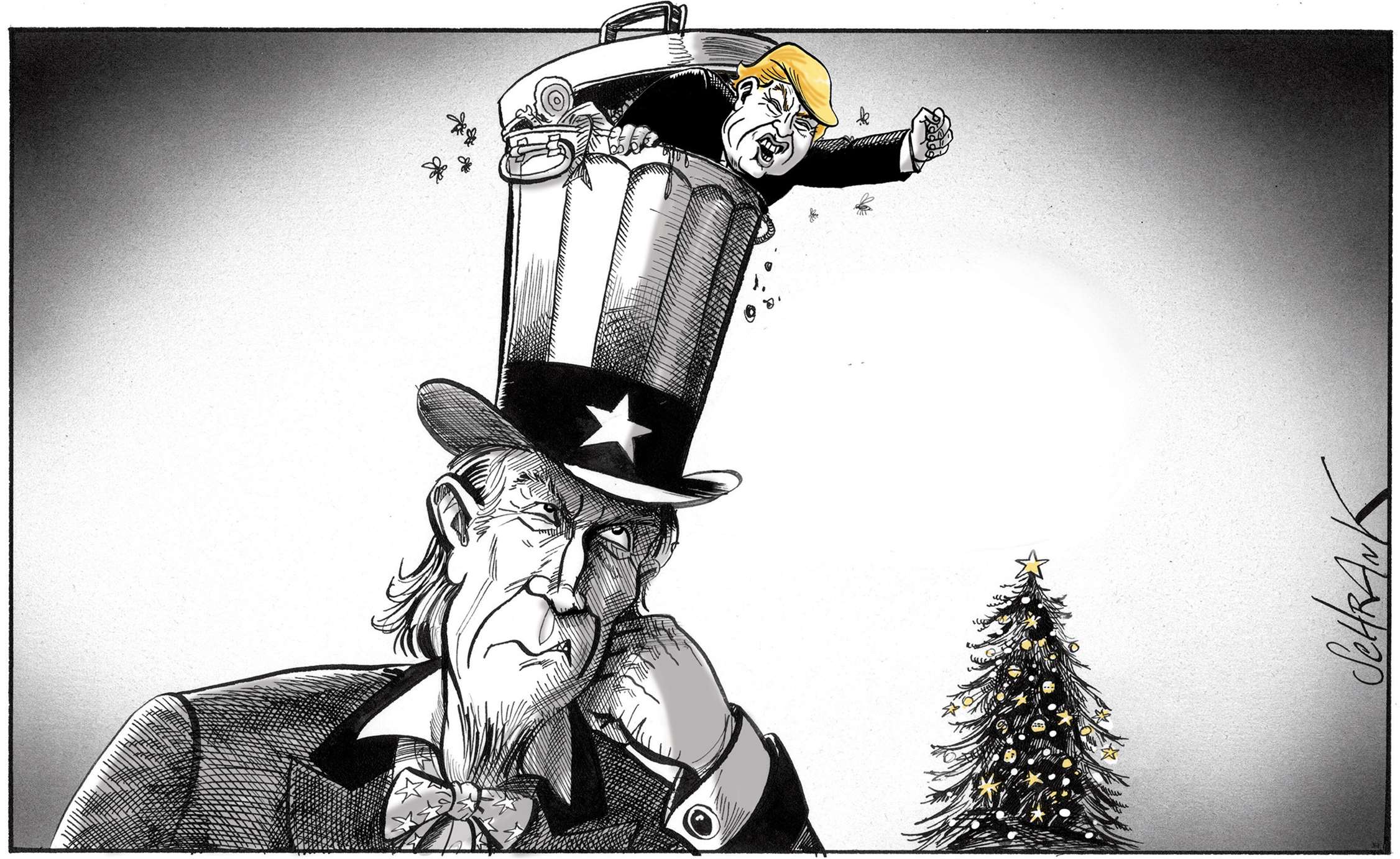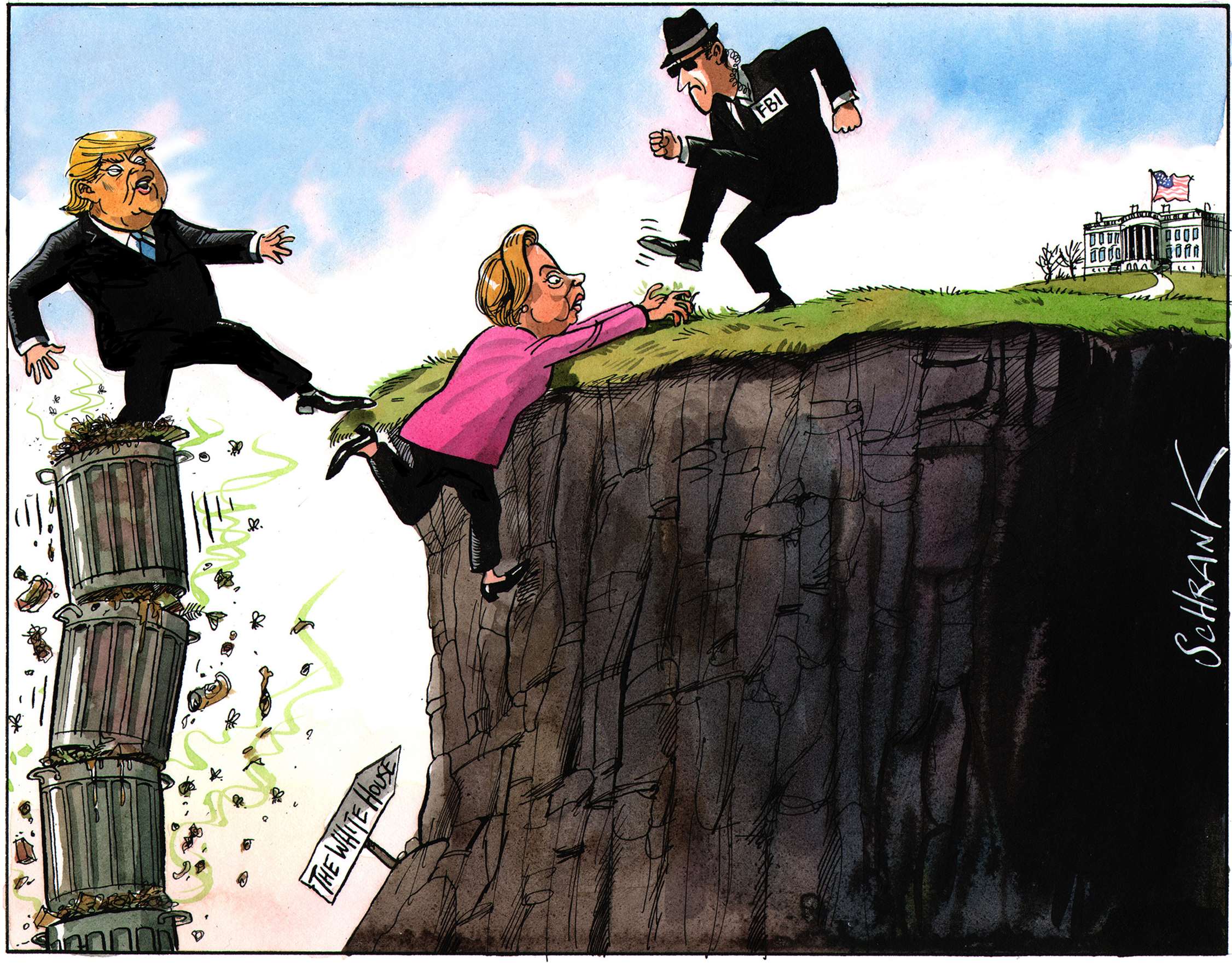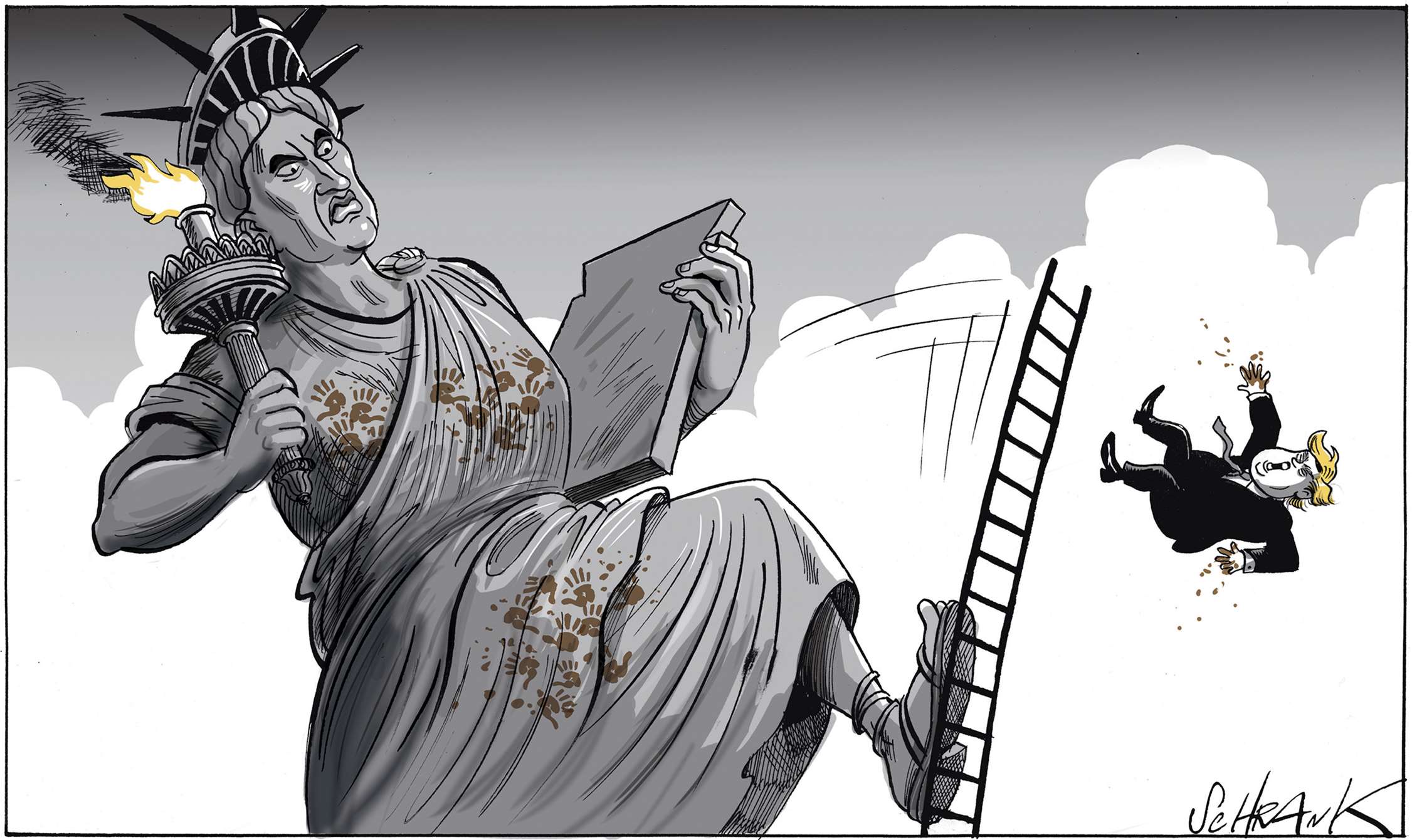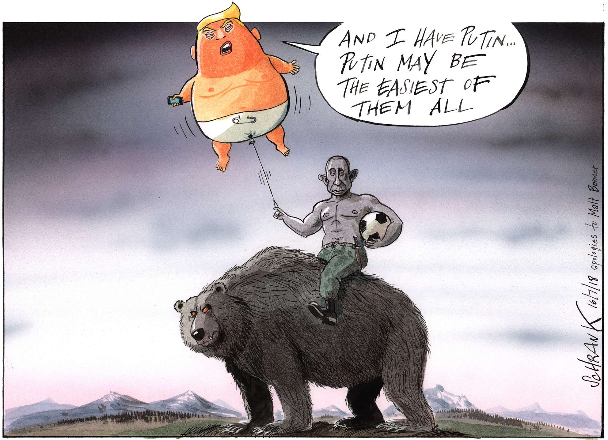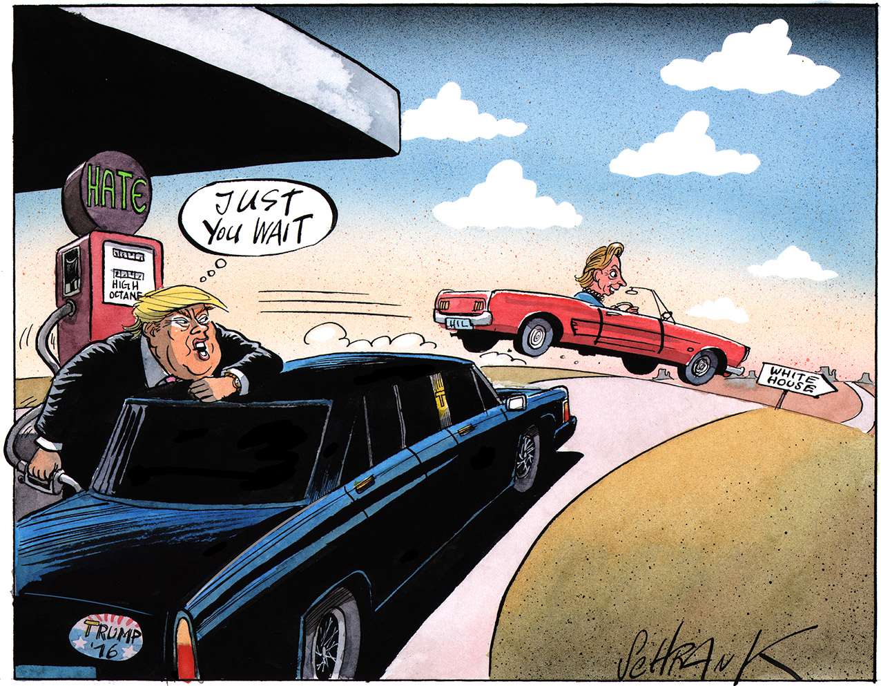 One of the problems with world affairs, particularly in the west, is an all-encompassing cynicism, the kind of thinking that, for example, claims that Trump and Clinton are as bad as each other. Lazy thinking, almost comforting. Why bother, everything is going to hell anyway. This is a dangerous fallacy, which cartoonists, satirists and all professional cynics must not help to perpetuate. Particularly in a world where even the truth and facts are contested. However much we exaggerate, blow things out of proportion, strain for a laugh, we must still stick up for the truth.