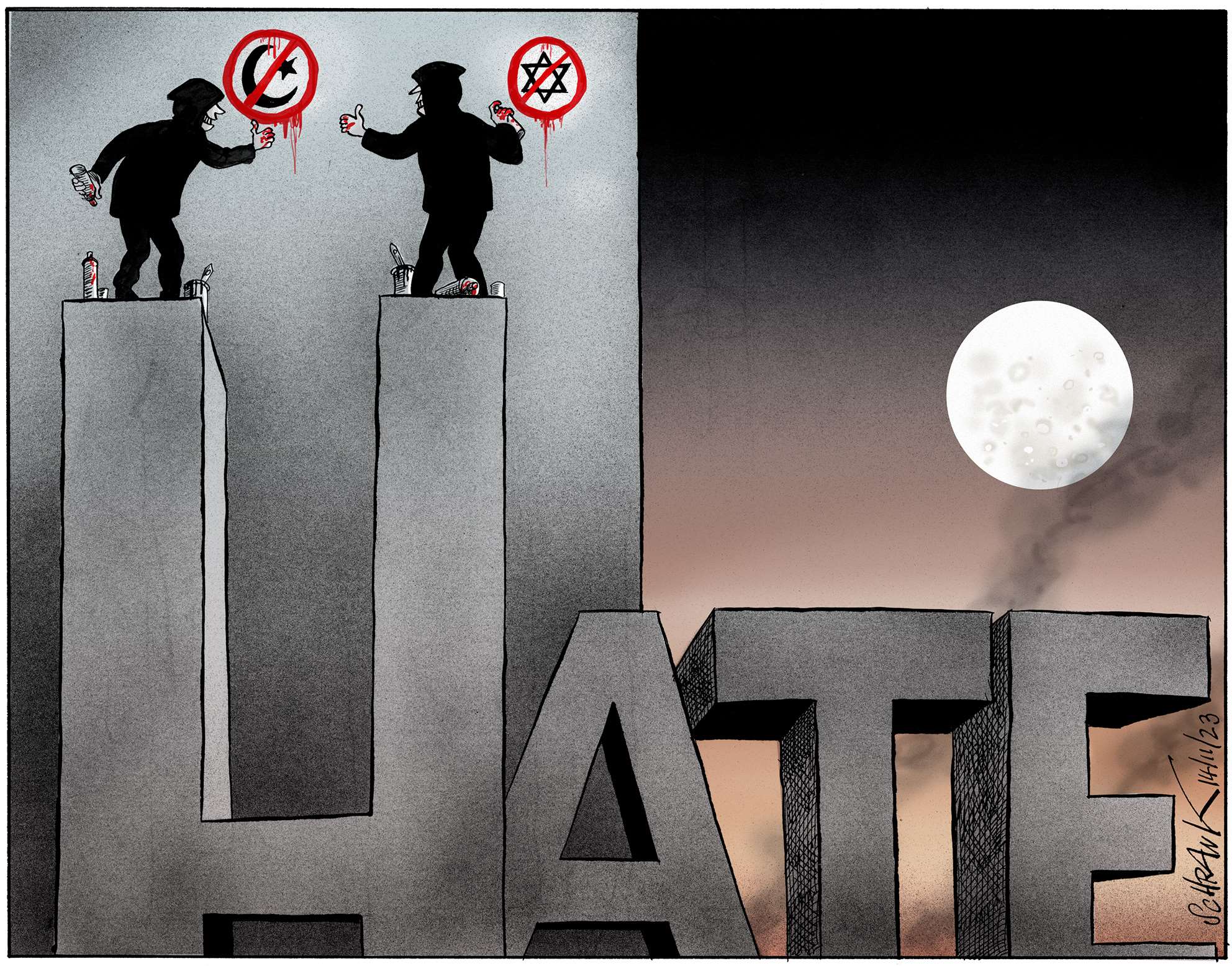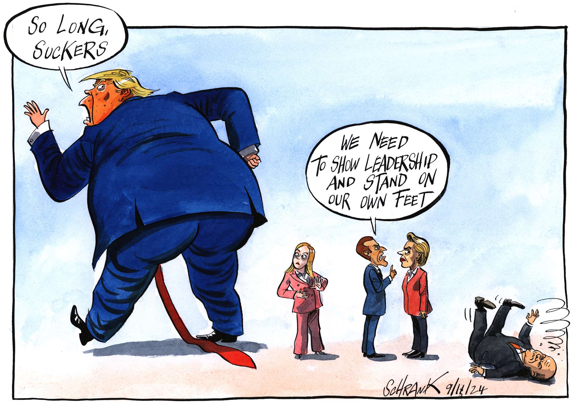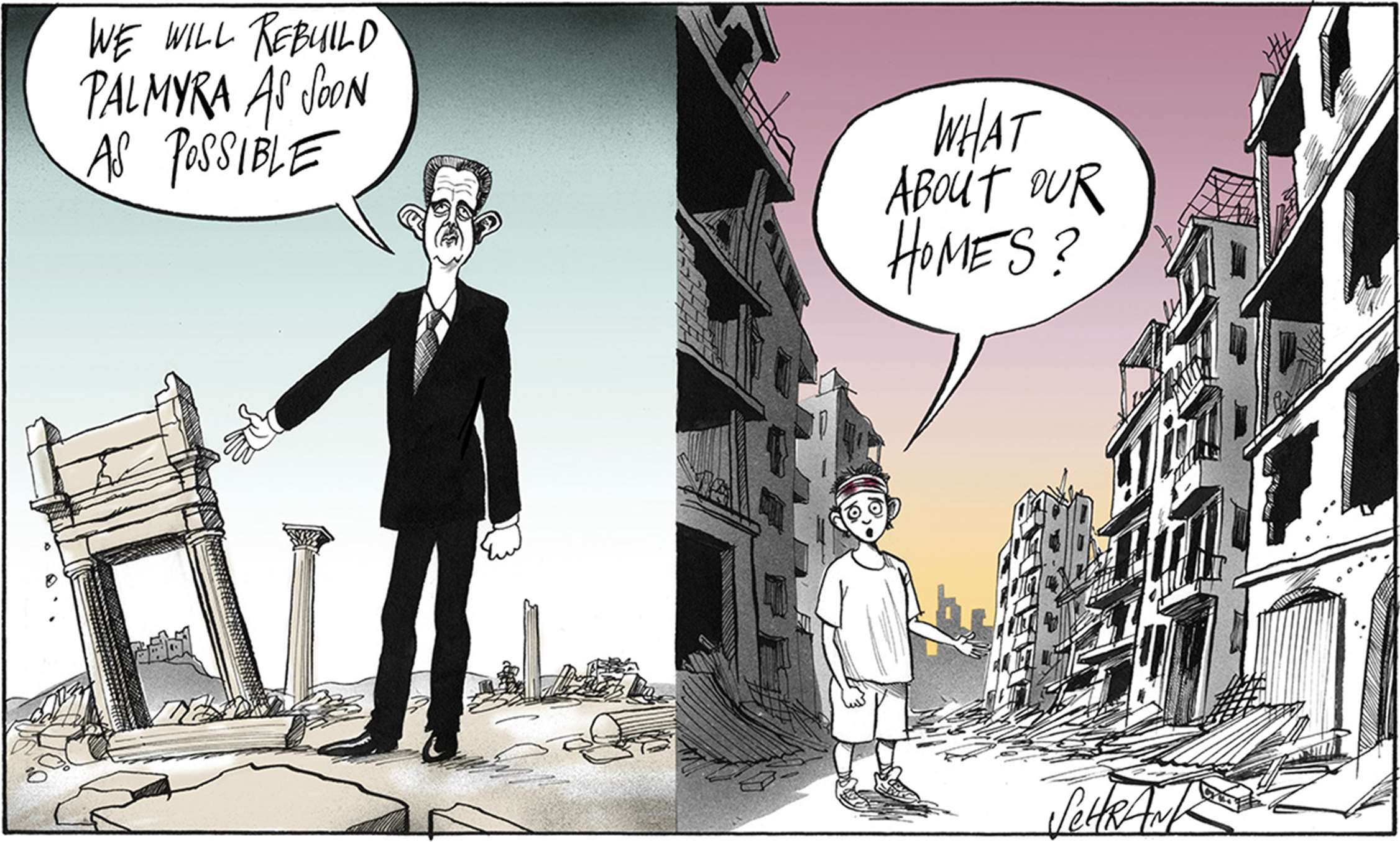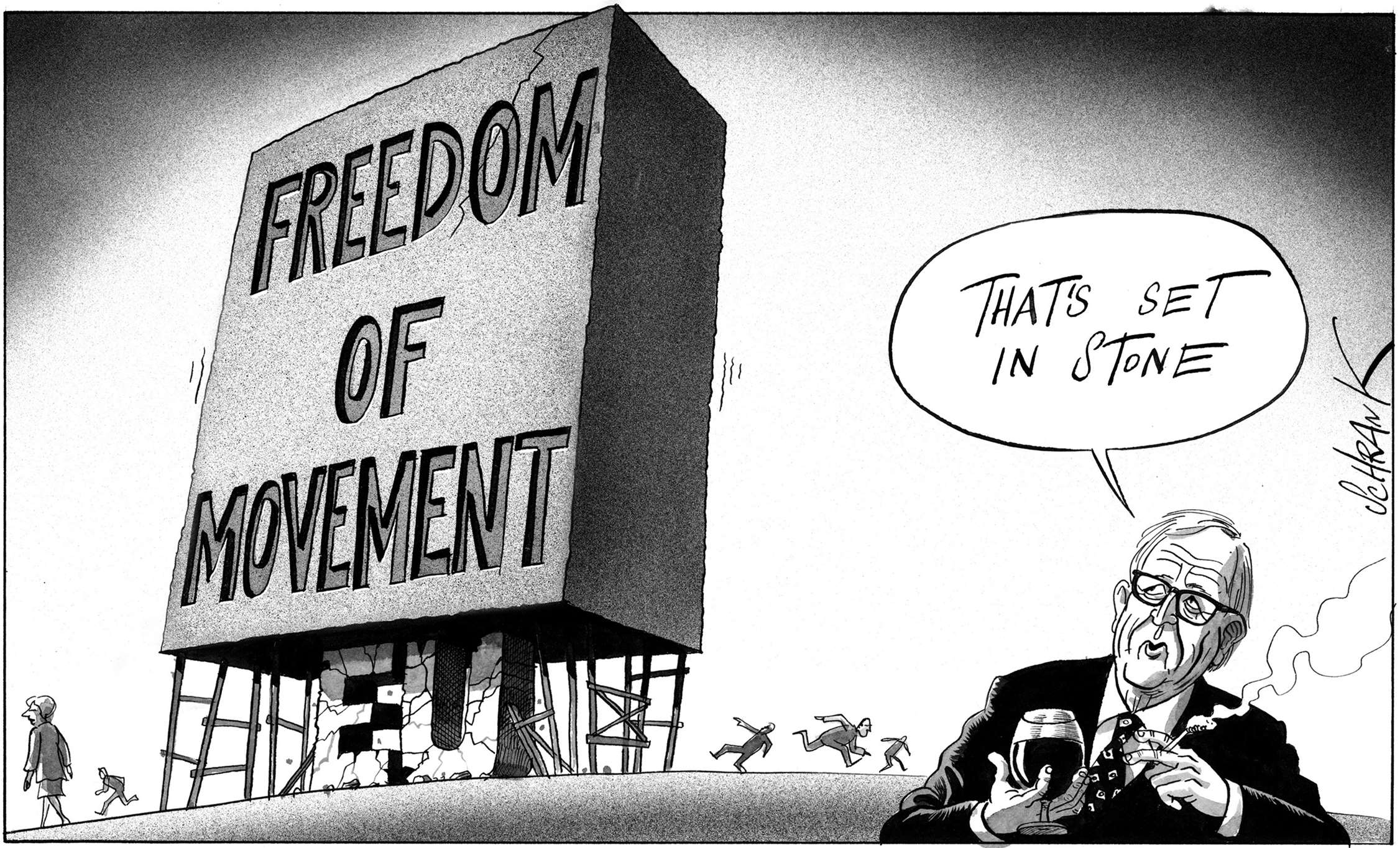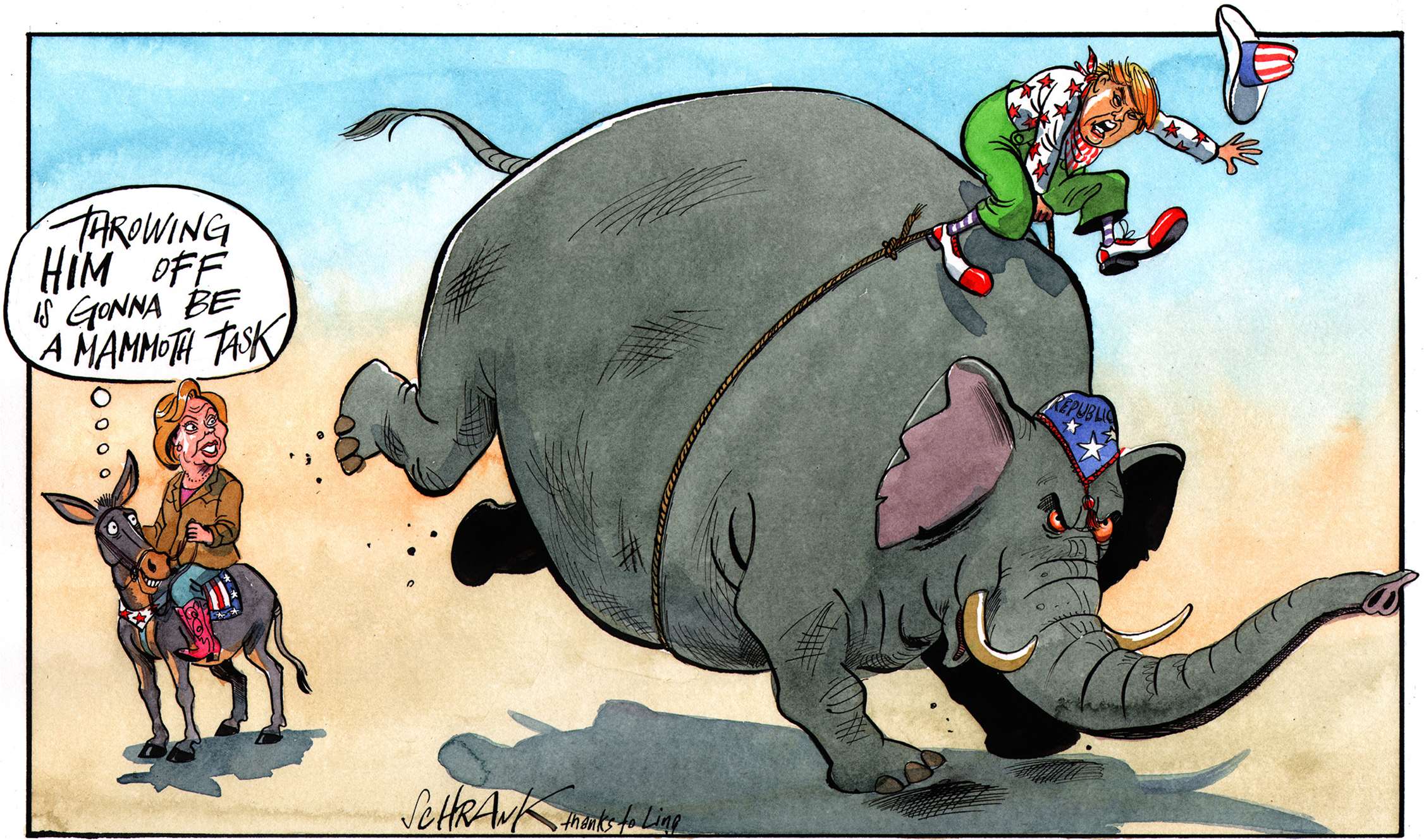 One of the problems with world affairs, particularly in the west, is an all-encompassing cynicism, the kind of thinking that, for example, claims that Trump and Clinton are as bad as each other. Lazy thinking, almost comforting. Why bother, everything is going to hell anyway. This is a dangerous fallacy, which cartoonists, satirists and all professional cynics must not help to perpetuate. Particularly in a world where even the truth and facts are contested. However much we exaggerate, blow things out of proportion, strain for a laugh, we must still stick up for the truth.