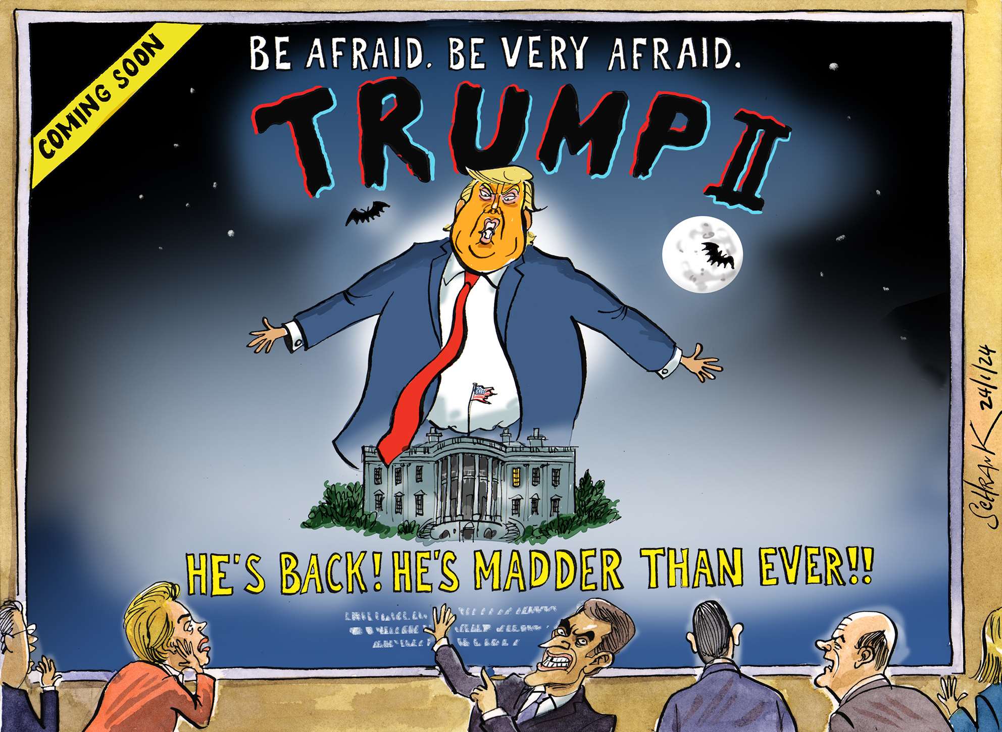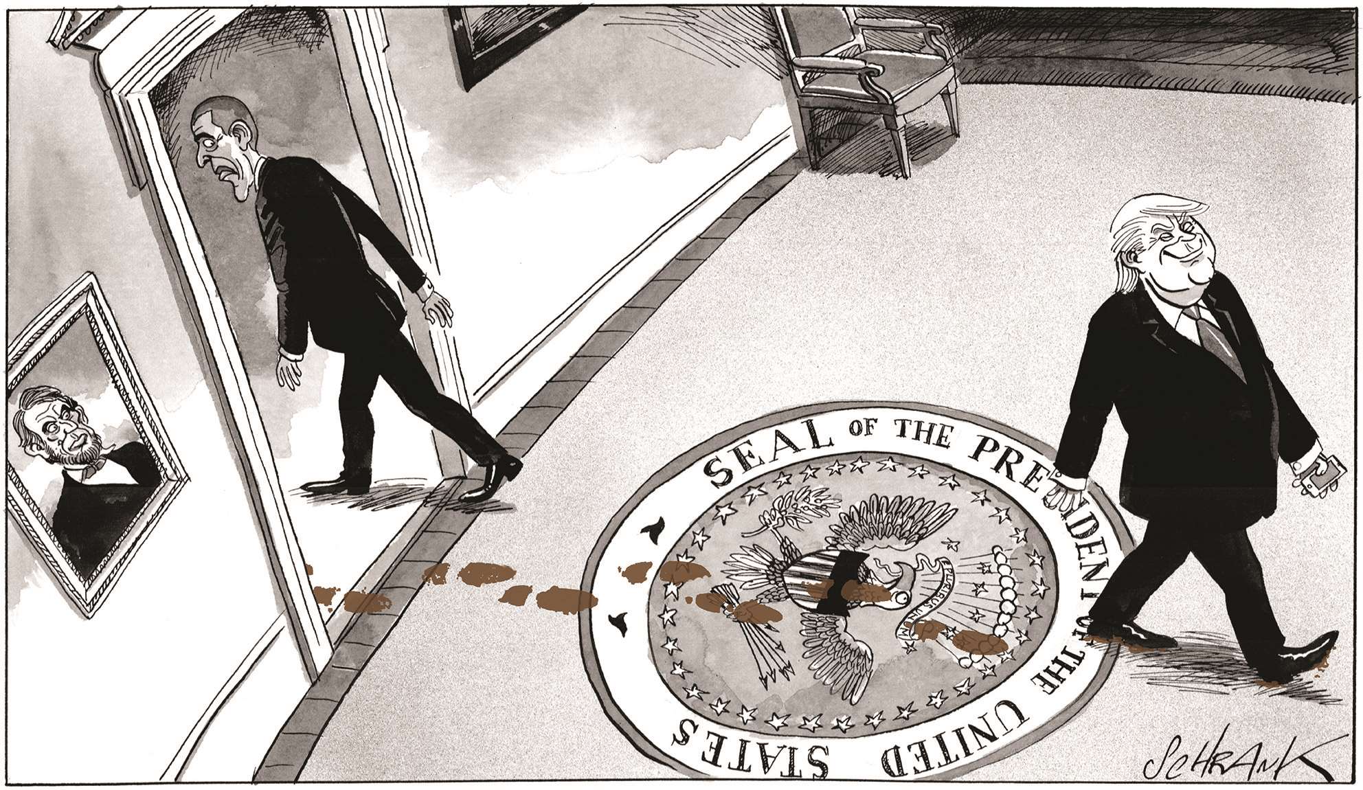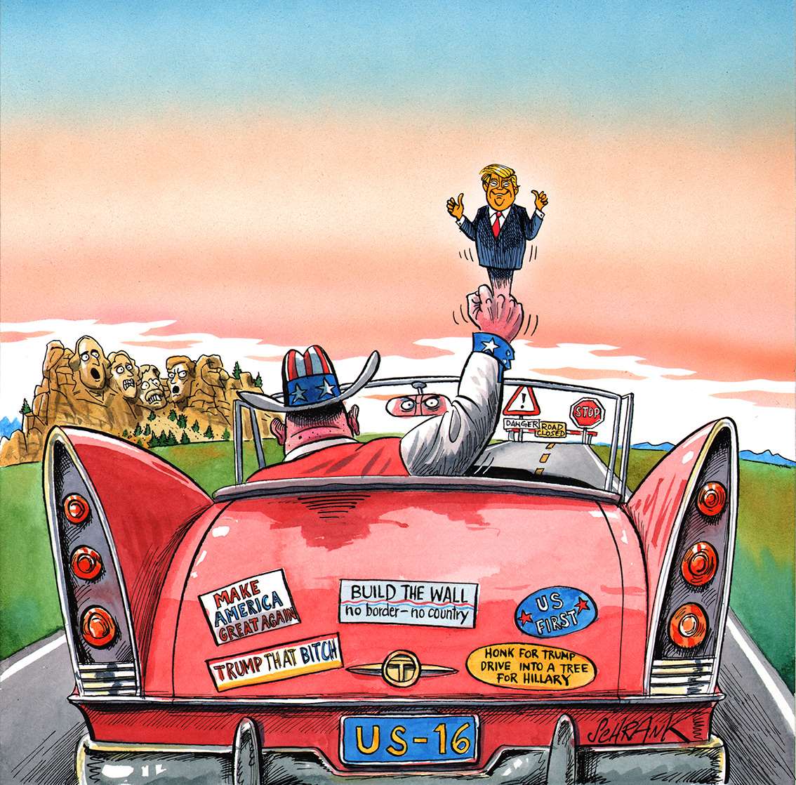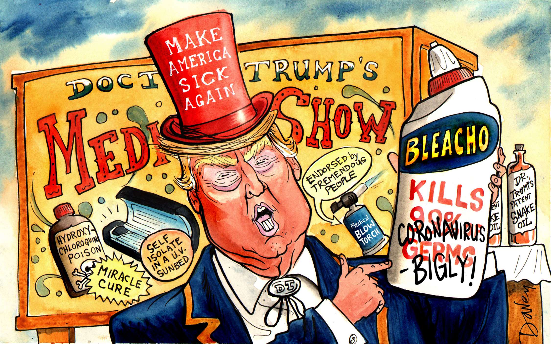 Donald Trump is the perfect example of bad news being good news for cartoonists and satirists: the prospect of a man so seemingly shallow, vulgar and objectionable, a man of such ludicrous appearance, occupying the most powerful office on the planet must fill every right thinking person with horror. Yet to satirists he's a gift, a source of endless inspiration.