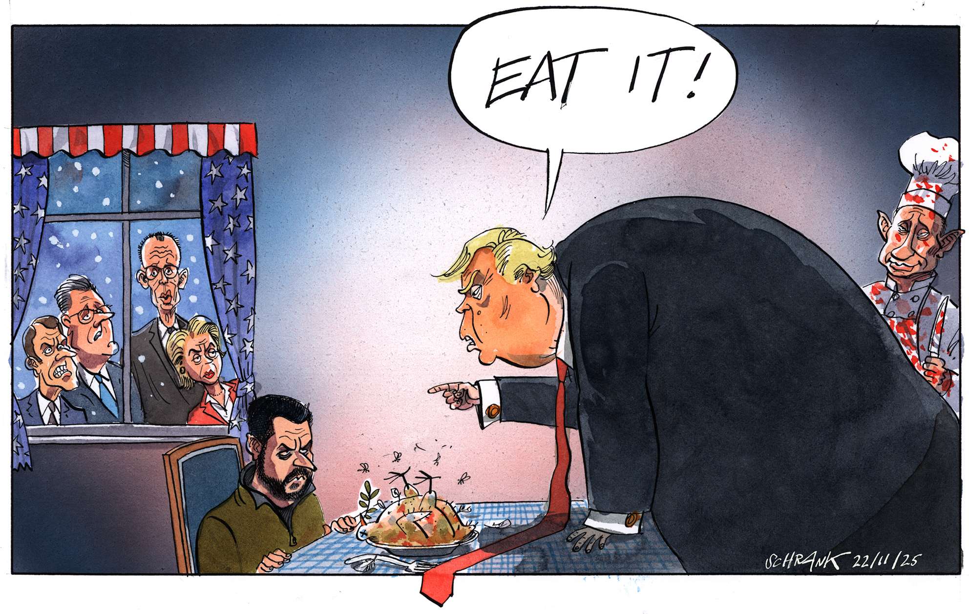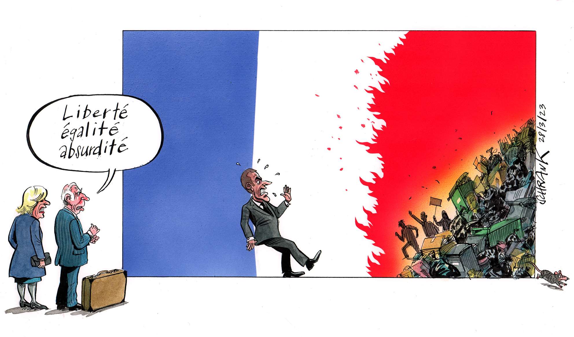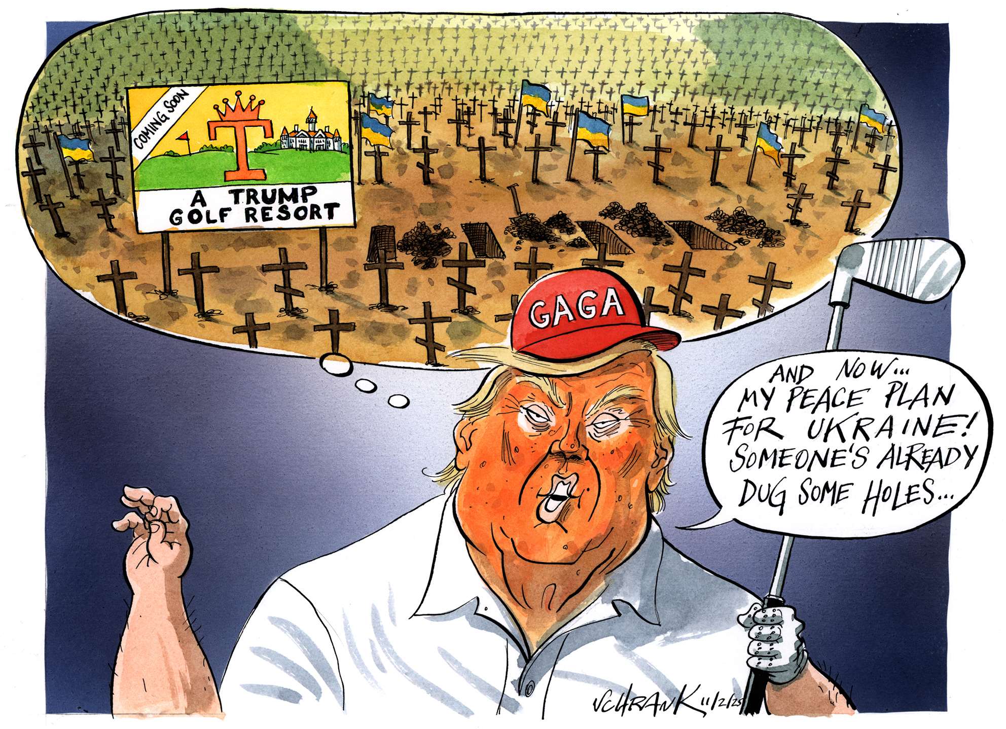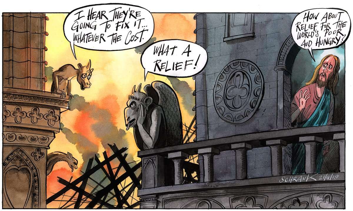 So cartoonists and satirists are a little like vultures: we depend on death, deceit and destruction for the survival of our profession.